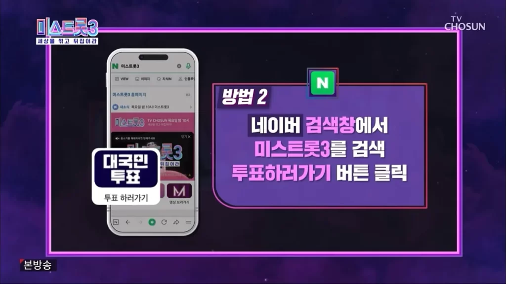 1. 네이버 검색창에서 미스트롯3을 검색합니다.